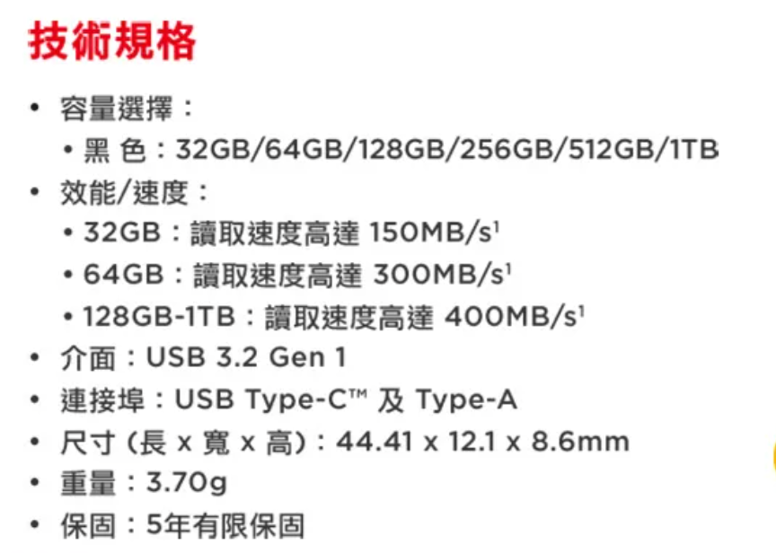 • 高效能USB 3.2 Gen 1隨身碟提供400MB/s的讀取速度